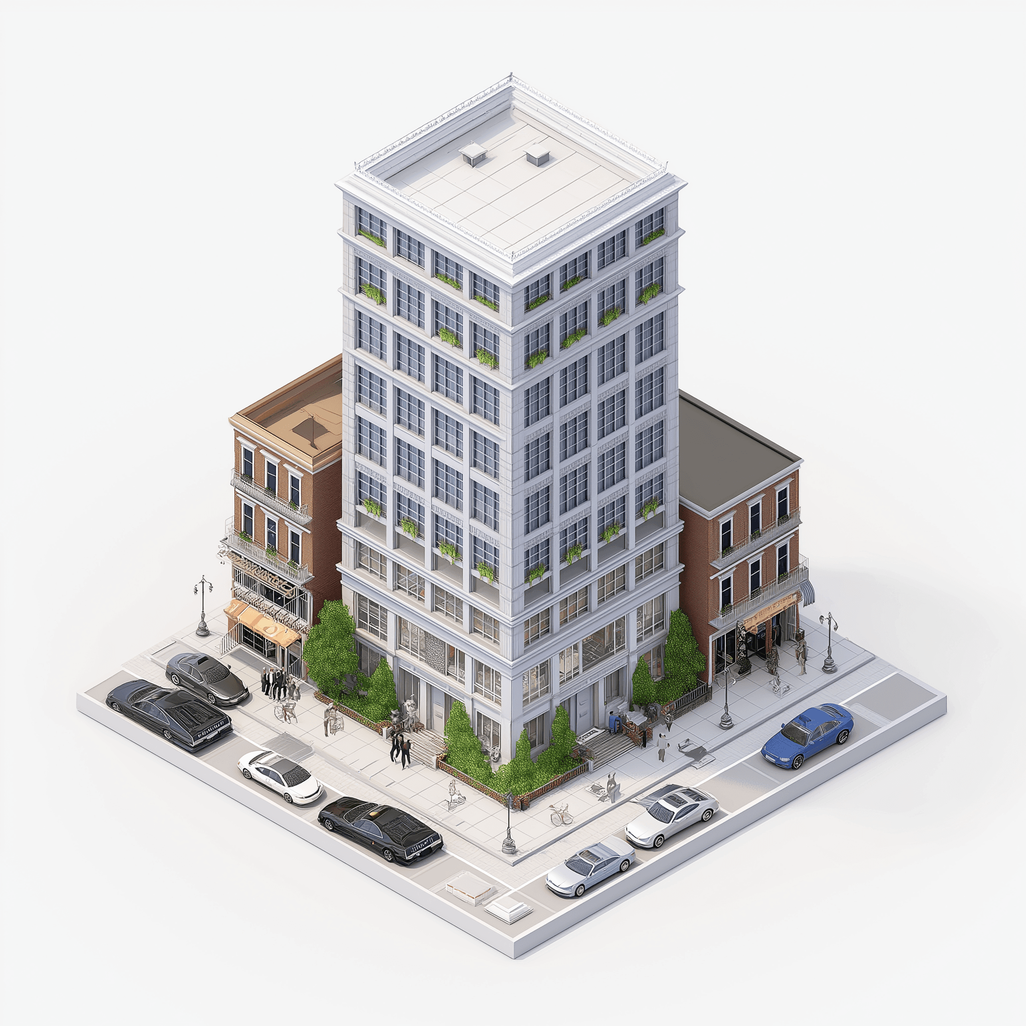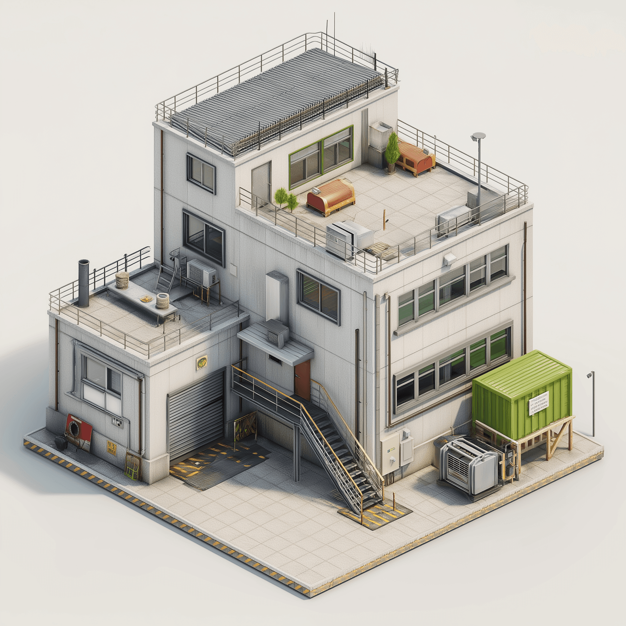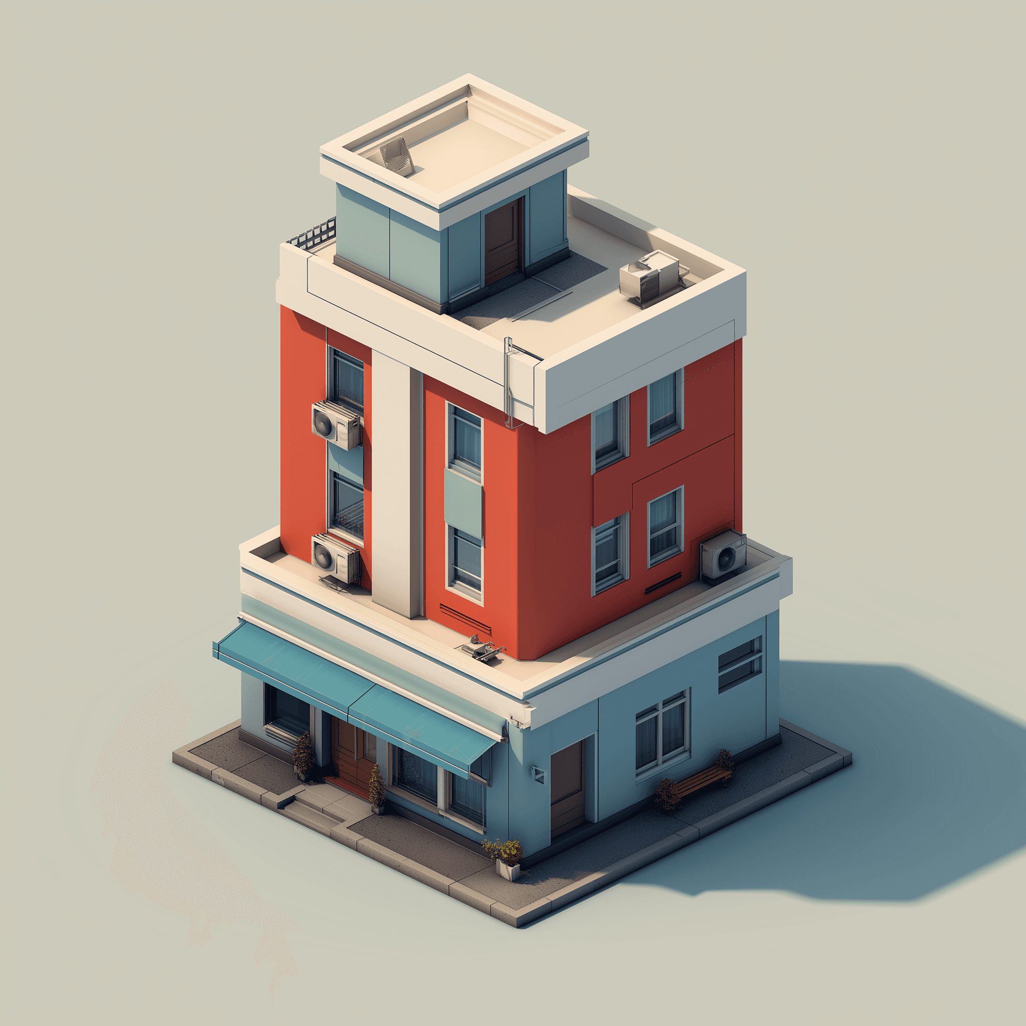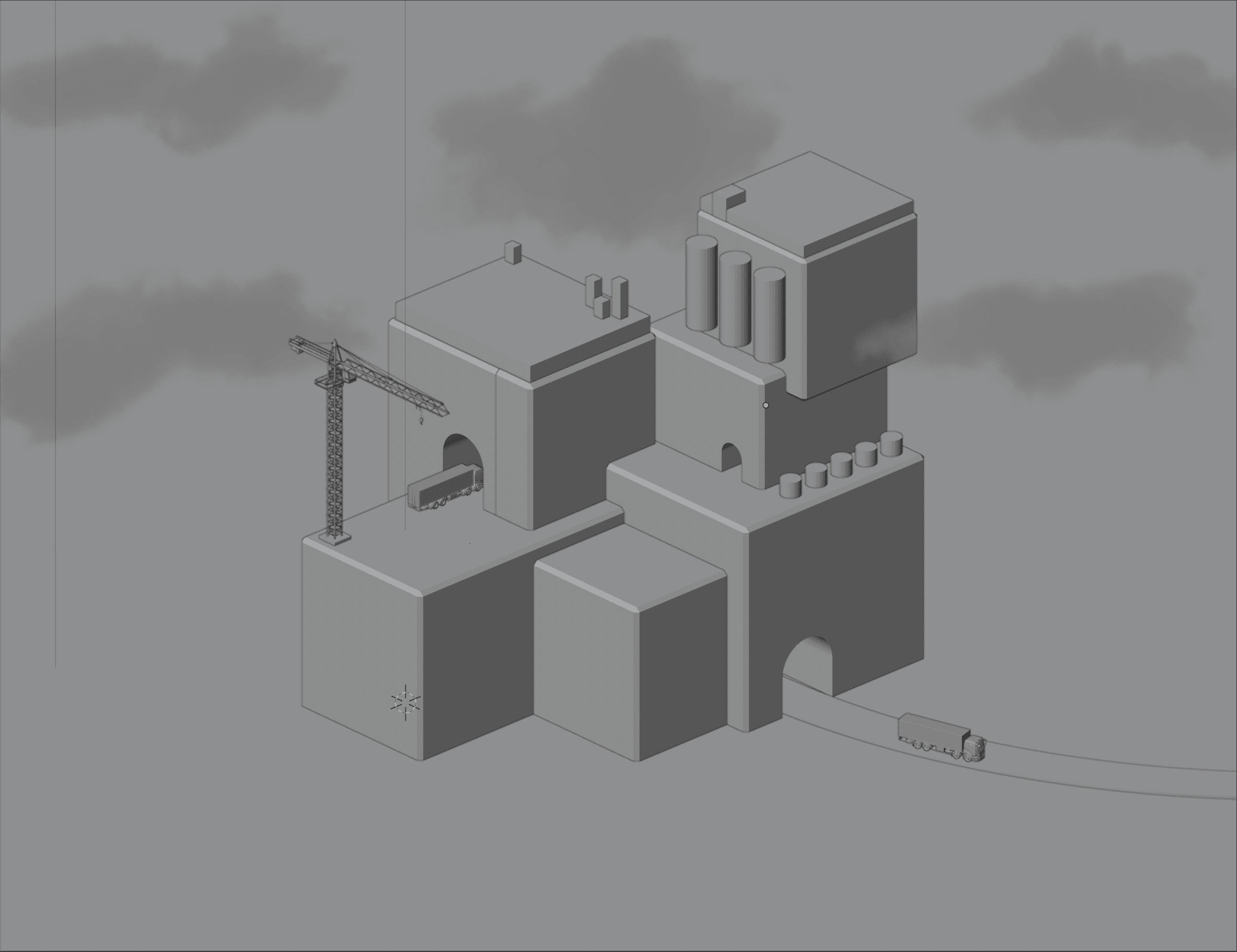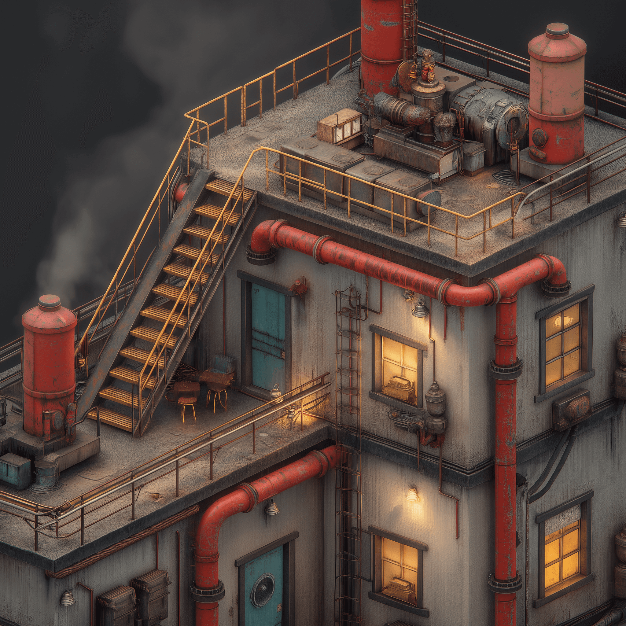 Я не художник, тому різні деталі, такі як рослини, будівлі, машини і т.д., я згенерував за допомогою Midjourney. Я не люблю артефакти ШІ, мені не подобається в дизайні, коли видно, що робота згенерована ШІ. Тому, коли я все ж використовую його, то намагаюся максимально прибрати усі артефакти. Благо, що всі ці деталі були в маленькому масштабі і ассети не потребували сильної обробки.