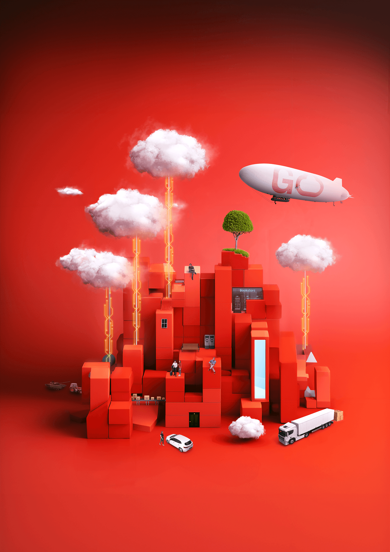 Gigacloud звернувся до мене для розробки візуалів для їх виставкового стенду. Як референс був використаний мій старий дизайн, зроблений за допомогою ШІ та композитингу в Photoshop. Треба було переробити більш якісно та деталізовано.