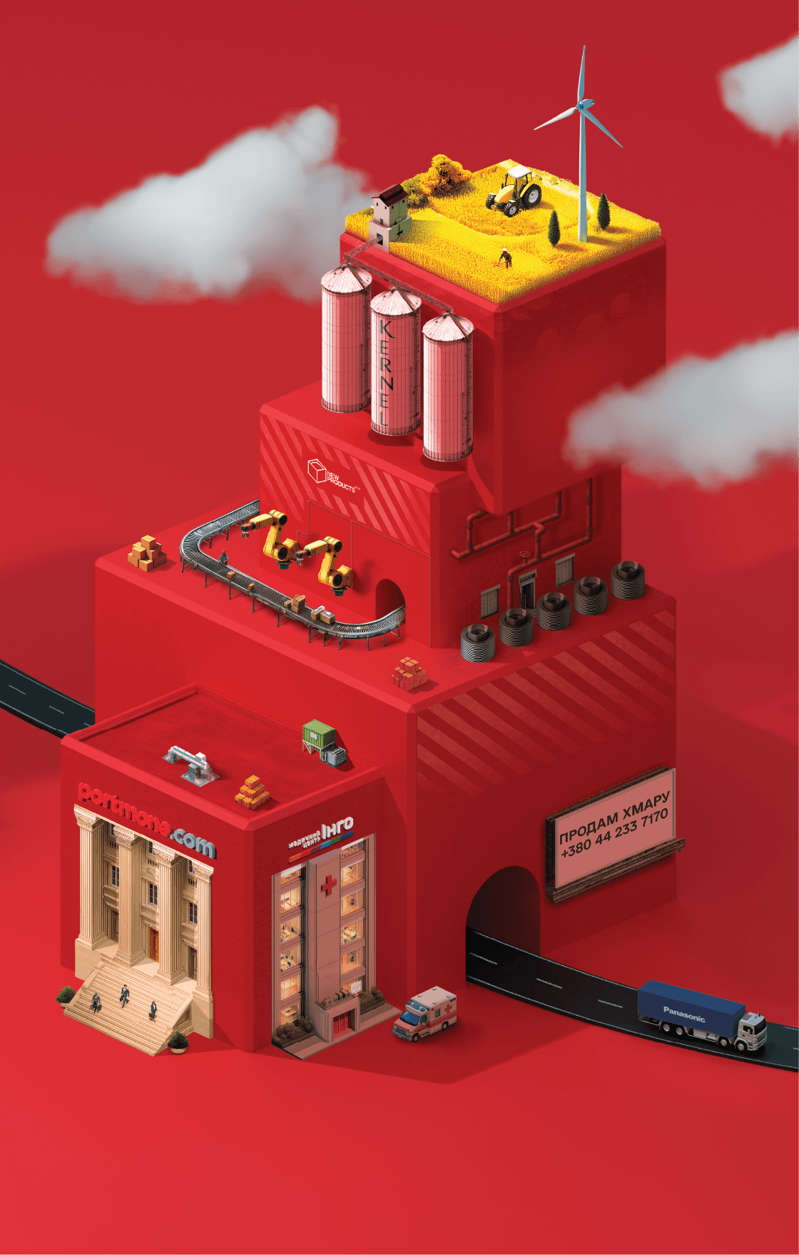 Після цих підготовок настала вирішальна стадія — зібрати усе це в Фотошопі та підготувати до друку. На цей етап пішло найбільше часу, тому що тут уже треба було робити цілісно та в одному стилі, і головне — з ПЕРСПЕКТИВОЮ. Хоч я і генерував усе з однієї перспективи, але так як це ШІ, всі ассети трохи відрізнялися, тому майже кожен ассет я вирівнював за допомогою Perspective Warp.